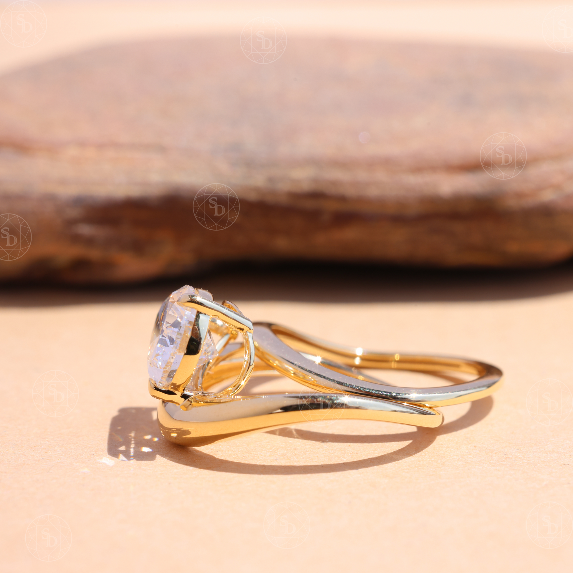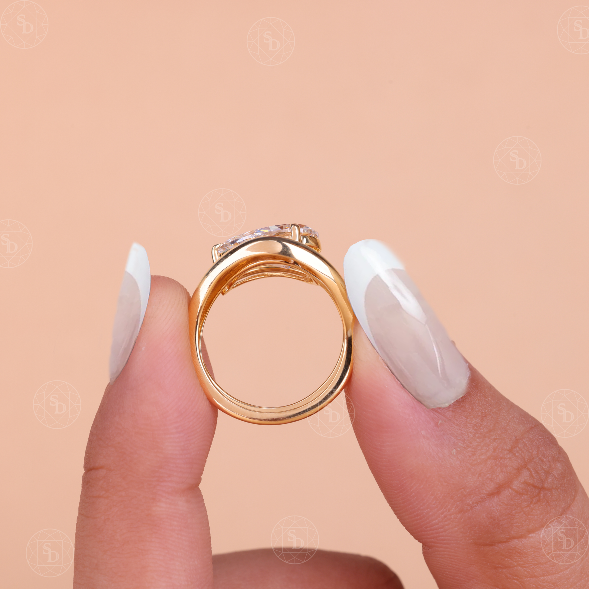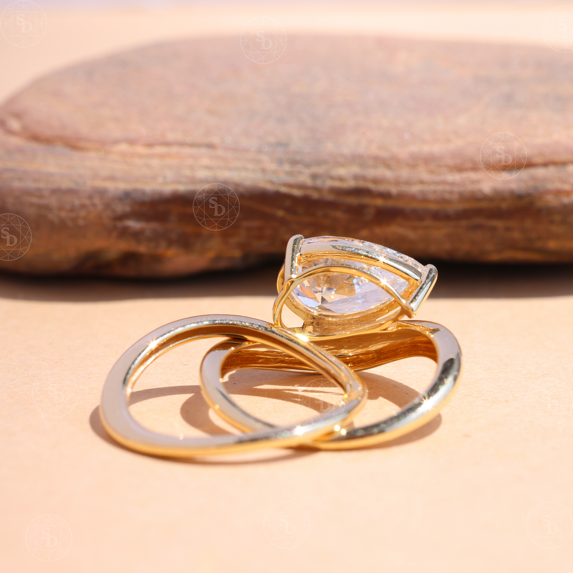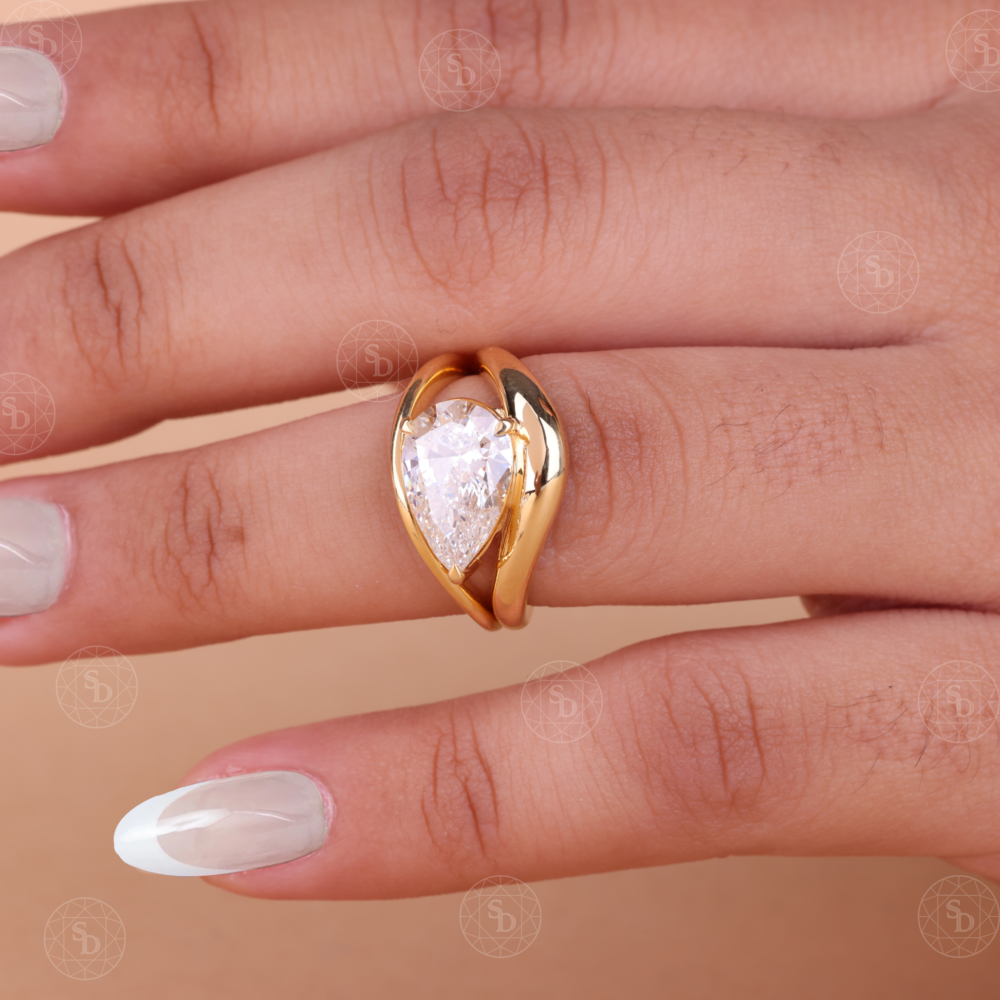 2 Ct Pear Cut Lab-Grown Diamond Engagement Ring Set — Bridal Ring Set, Stackable Wedding Ring Set, Solitaire Matching Ring Set, 14K Yellow Gold Matching Wedding Band, Teardrop Stacking Ring, Wedding Gift, Anniversary Gift, Gift for Her, Bridesmaid Gift